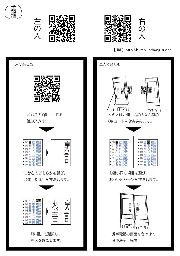 - 携帯電話の画面を合わせて合体漢字、完成!